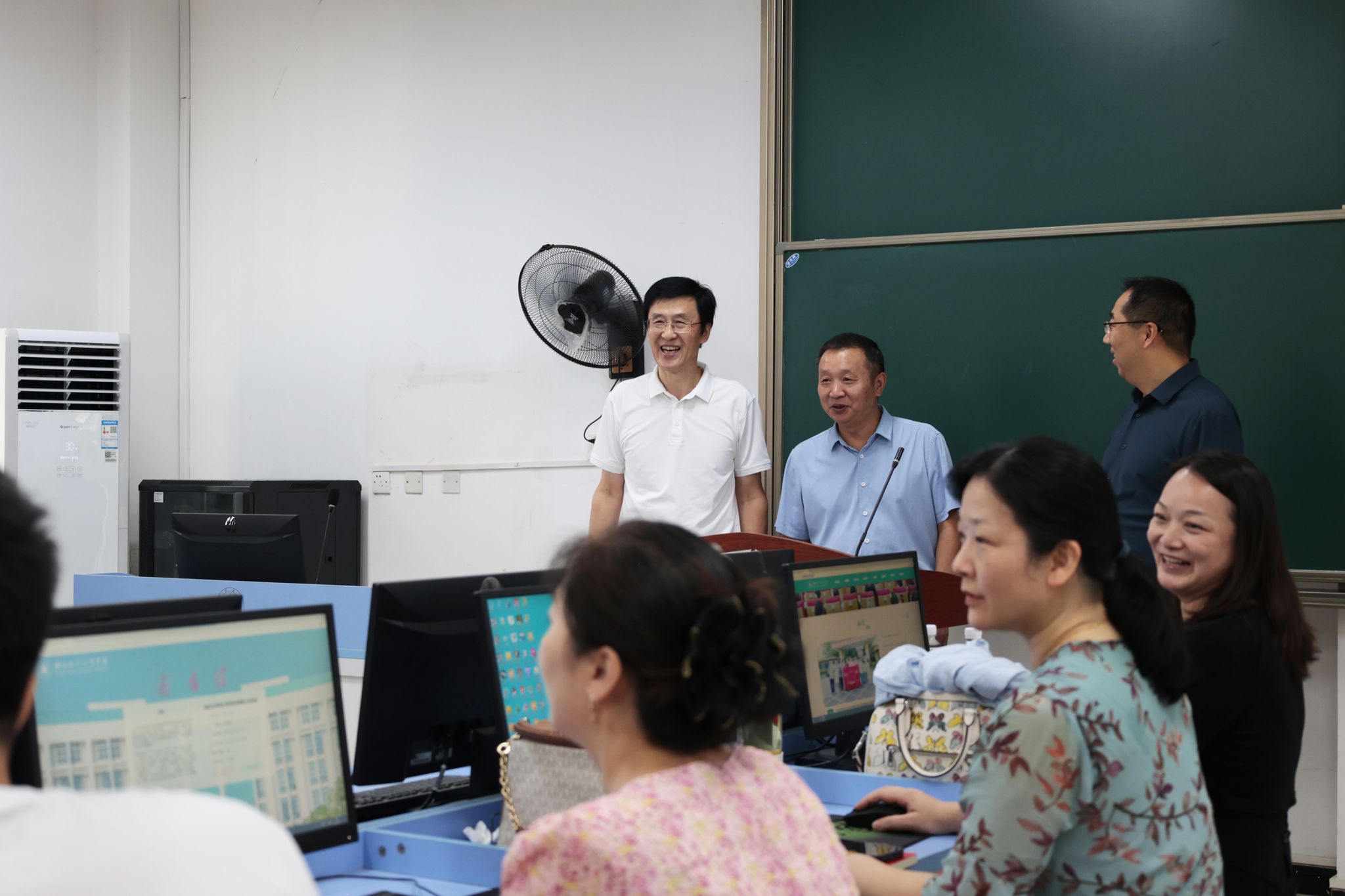 培训开始前,党委书记高连顺、院长何顺进来到培训现场,看望参训教师并对培训工作予以指导,与参训教师们亲切交流,详细了解培训安排和教师们的需求,指出人工智能正深刻改变着教育生态,要积极拥抱变化,将AI工具创新应用于教学实践,为学生提供更个性化和高效的学习体验,通过技术赋能提升教学质量。
