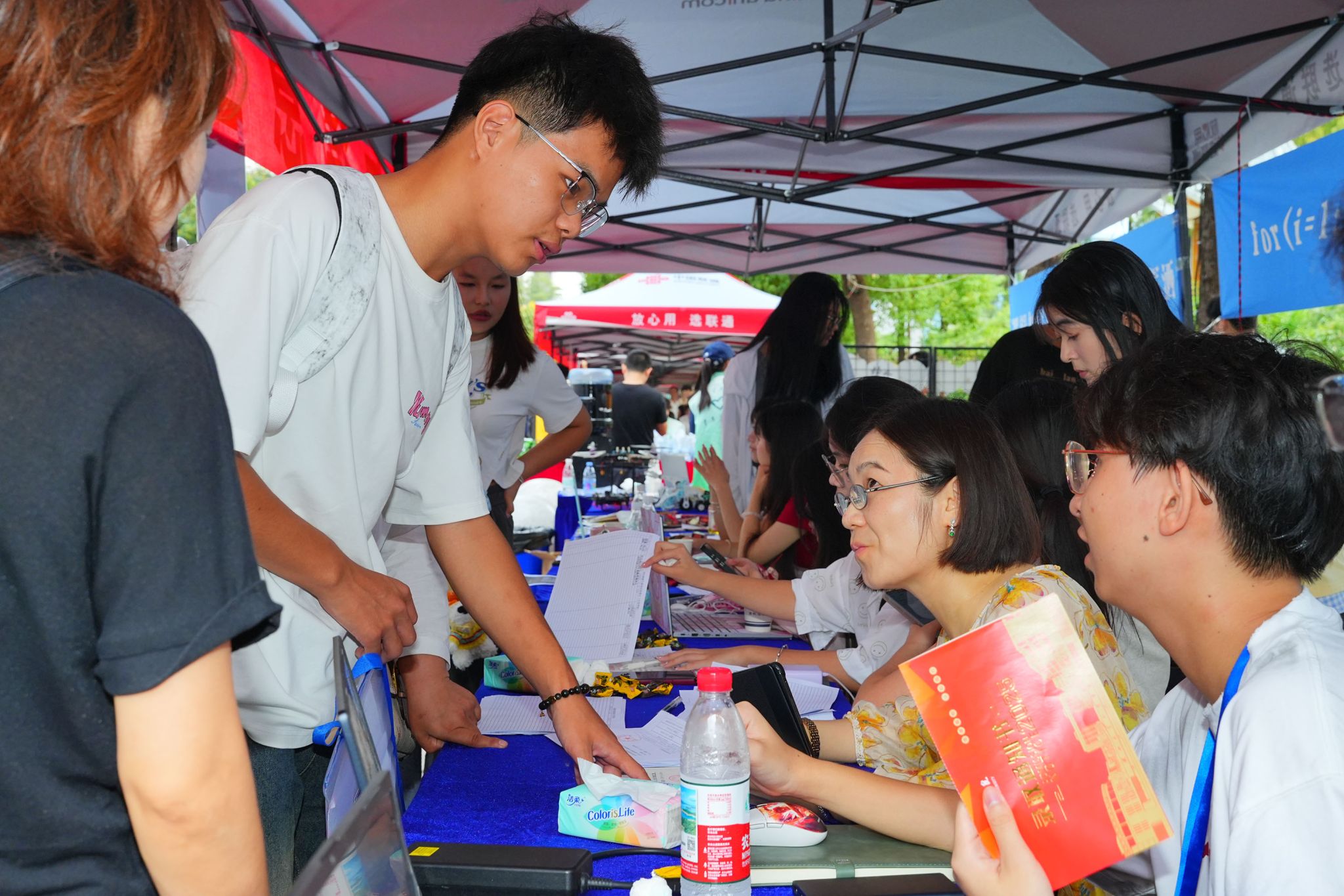迎新现场,各二级学院结合专业特色,用满满的诚意欢迎新同学的到来。机械与自动化学院设置3D技术打印展示区,直观呈现学院学科特色,激发新生专业兴趣;计算机与信息工程学院在现场展示出大量在校生设计的机器人、无人机等作品,吸引不少新生及家长观摩;粮食与食品工程学院为新生准备了师生亲手制作的月饼礼包。艺术与设计学院、人文学院、经济与管理学院、外国语学院、会计学院、生物与化学工程学院则别出心裁地为每位新生准备了极具特色的文创纪念品,表达对新生的美好祝福与期许。9月17日,全体新生将开始为期两周的军训。