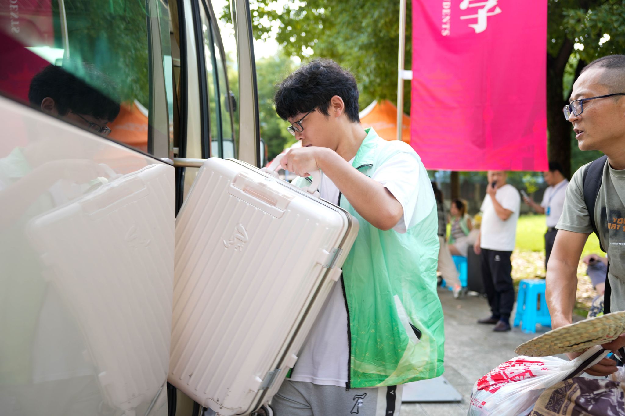 迎新现场,学校各部门协同联动,确保迎新工作安全、有序、高效。校园内,“欢迎新同学”的彩旗沿主干道依次悬挂。学工处特别安排中巴摆渡车接送学生及家长从迎新点直达学生宿舍,尽量让学生少走路。各学院迎新点统一搭建遮阳棚,配备饮水机、应急药品箱及行李寄存处。校门口设置 “新生专用通道”,安排志愿者引导车辆分流,避免交通拥堵。在迎新现场,志愿者成为最亮眼的风景,他们为新生提供 “从校门到宿舍” 的全程陪伴,用热情与真诚缓解家长的担忧。在“绿色通道”服务台,学工处工作人员为家庭经济困难新生现场办理助学金申请、学费缓缴手续,并发放生活用品的“爱心大礼包”,帮助新生解决入学难题。此外,学校还在武昌火车站、汉口火车站、武汉站设立迎新专线,安排大巴车循环接送新生。