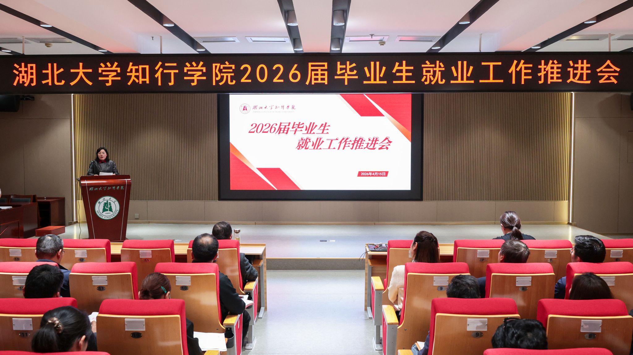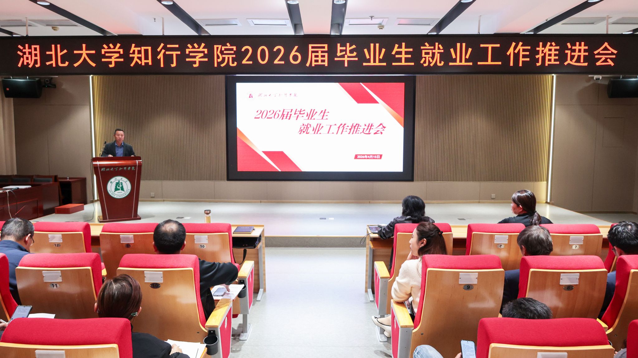 4月15日下午,学校在知远楼202弘智厅召开2026届毕业生就业工作推进会。党委书记金梅、院长何顺进出席会议并作动员讲话。相关职能部门负责人、各二级学院班子成员及全体辅导员参加会议。副院长刘张虎主持会议。