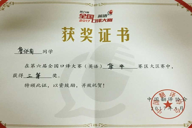 全国口译大赛(英语)是由中国翻译协会主办的重要赛事之一,为提升学生的英语综合语言能力,增强职场竞争力,拓宽就业渠道提供了良好的展示平台。口译是外语应用领域最具挑战性的技能之一,全国口译大赛吸引了来自全国各地高校的大批英语爱好者,从职业素养、技巧运用、信息传达等多方面考察参赛选手的综合水平,选拔优秀选手的同时也让全社会了解口译行业。