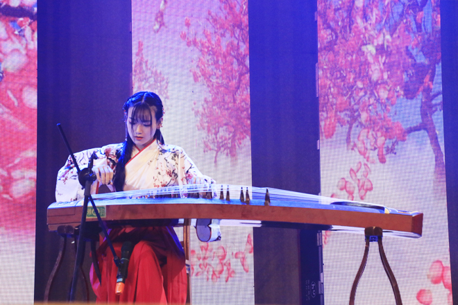 “这世界的太阳,因为自信才能把我照亮,这舞台的中央,有我才闪亮……”由2017级新生组成的院艺术团文艺班带来的舞蹈《咖喱青春》充分展现了知行新主人的朝气蓬勃。院艺术团红杉林合唱团指导老师路琛和李怡霖、赵越两位同学带来的一曲《她她她》感情充沛,展现了较高的专业水准。经管系歌舞表演《致青春-匆匆那年》动情细腻,以婉转动听的歌曲生动呈现了令人回味无穷的青春时光。会计系师生同台演绎的舞蹈《伦巴之梦》动作优美,引人入胜。书法乐器表演《不负韶华》和《拜师礼》尽显中华传统文化的魅力。由新生军训教官表演的《拳术组合》则将晚会推向高潮,教官们铿锵有力的动作、高超的格斗技巧赢得了同学们的喝彩。啦啦操表演《青春的力量》展示了知行学子生机勃勃的青春气息。优美的古典舞蹈、动听的歌曲串烧、极富民族特色的乐器表演……整台晚会精彩纷呈,令人目不暇接。