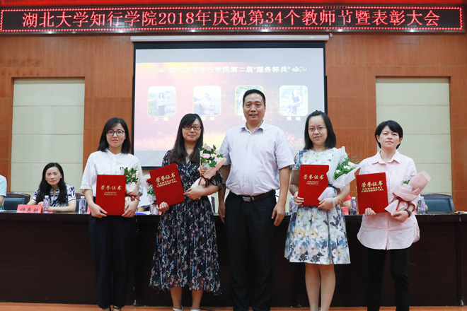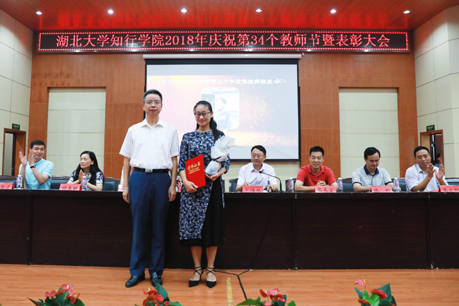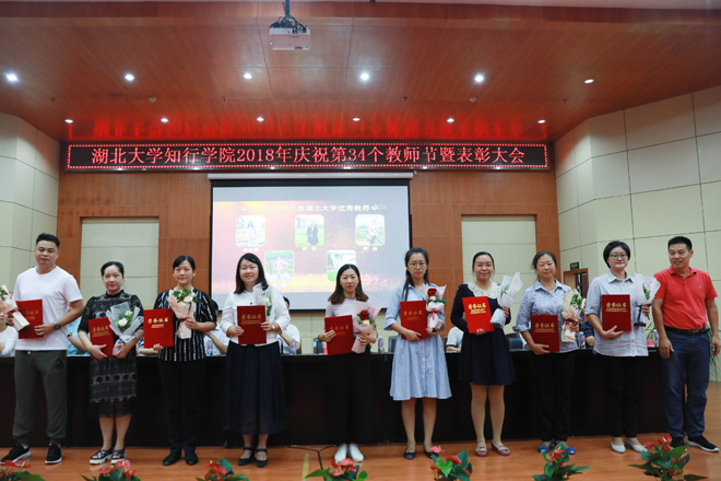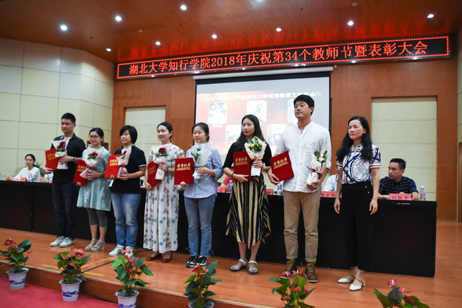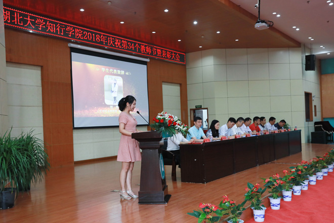 大会在雄壮的国歌声中拉开帷幕,学生代表赵爽同学代表全体学子表达了对老师们的感激之情和深情祝福。副院长黄智凌宣读湖北大学和学院表彰决定,希望受表彰的同志珍惜荣誉,再接再厉,并勉励广大教师以先进典型为榜样,为学院的改革发展作出新的更大贡献。人文系金霞老师和经管系龚峰老师作为教师代表发言,两位老师表达了对各自岗位的认识和工作感受,表示将以此为新起点,不断学习,开拓进取,以更加饱满的热情投入到今后的工作中,争创更加优异的工作成绩为学院的发展做出新贡献。
