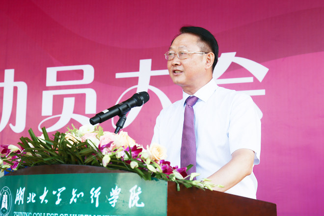 在雄壮激昂的国歌声中,开学典礼正式拉开帷幕。2019级新生代表邹峥在发言中表示将不负时代重托,坚定人生理想,争做有为青年,将小我融入大我,将奋斗的青春献给祖国,在点滴的拼搏与努力之中,在知行成就未来,成就梦想。在校生代表赵爽结合大学的成长成才经历希望学弟学妹们爱国爱校、勇担使命,求真学问、勇攀高峰,知行合一、勇于实践。会上,校党委副书记高志宏宣读《湖北大学知行学院关于成立2019年军训团的决定》。