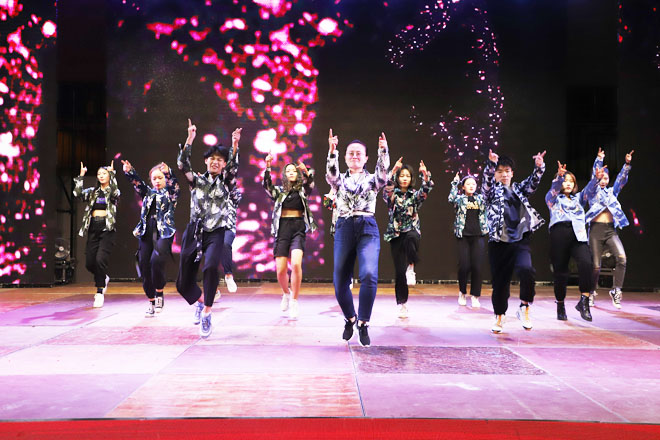 晚会开始前,学校为庆祝新中国成立70周年筹划拍摄的“我和我的祖国”音乐快闪MV首播,表达了知行师生对祖国的热爱,对知行美好明天的憧憬。晚会在《龙腾虎跃》舞狮节目中拉开帷幕,四只活灵活现的狮子手足舞蹈,寓意美好,迅速点燃现场观众的热情。晚会共分为“绽放青春 不负韶华”“勇担使命 砥砺前行”“致敬青春 礼赞中华”三个篇章。《无限》《鹿 be free》《纵有疾风起 人生不言弃》等青春励志歌曲悦耳动听,鼓舞人心;《以爱之名》《知否知否》《将》《忠魂》《雪域高原》等舞蹈或动感十足,或温柔曼妙;诗话节目《青春的报告》《绣红旗》更是生动展现了知行大学生的时代担当和家国情怀;新生军训教官节目《一击制敌术》展现了教官们的男儿本色,豪迈气概,欢呼声、喝彩声一度引爆现场,将整个晚会推向高潮。晚会在全体师生中“我和我的祖国”大合唱中落下帷幕。