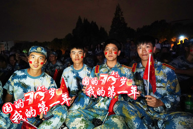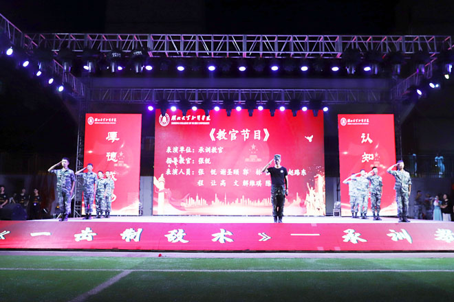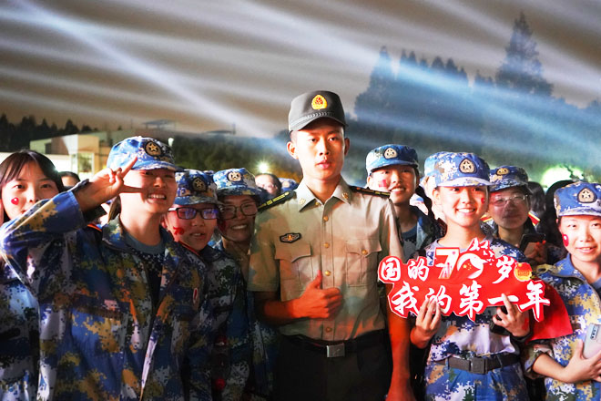 七十年,波澜壮阔,七十年,砥砺奋进。9月24日晚,美丽的知行灯光璀璨,青春激扬,学校在田径运动场隆重举行庆祝中华人民共和国成立七十周年暨2019年迎新生文艺晚会,共同庆祝新中国70华诞,祝福伟大祖国繁荣昌盛。全体校领导、2019级承训部队教官、教师代表、2019级新生和在校生3000余人观看晚会。