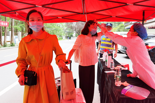 身份验证、测体温、消毒、领取毕业证学位证、返回宿舍领取行李……接待现场,毕业生返校离校手续办理既安全有序,又方便快捷。“好暖心,学校太有爱了,有一种回家的感觉,真的不想毕业。”计算机与信息工程学院计科1603班胡佳欢返校后动情地说,学校和老师们太有心了,把我们的寝室打扫得干干净净,衣服和被子都有阳光的味道,老师还一对一全程为我们服务。与胡佳欢一样,许多返校的毕业生办理完毕业手续后,开心地与老师们合影留念,共同追忆大学期间的点点滴滴。