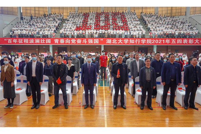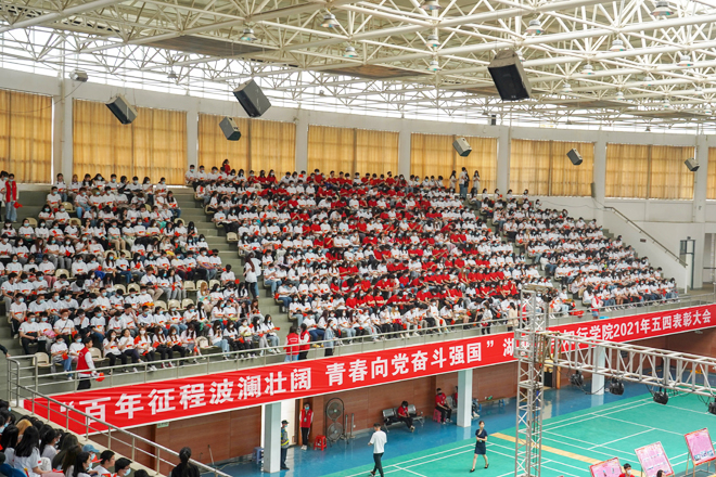 百年征程波澜壮阔,青春向党奋斗强国。4月28日下午,学校在体育馆隆重举行五四青年节庆祝表彰大会。校党委书记彭德忠寄语广大知行青年要坚定理想信念,练就过硬本领,乐于担当奉献,在奋斗中释放青春激情,追逐青春理想,把美好的青春汇入祖国发展进步的时代洪流,把闪光的足迹镌刻在民族复兴的伟大征途上,以优异的成绩向党的百年华诞献礼!在家校领导,各职能部门、各学院负责人,教职工代表、团学代表和受到表彰的先进集体和个人欢聚一堂,共同庆祝青年人的节日。