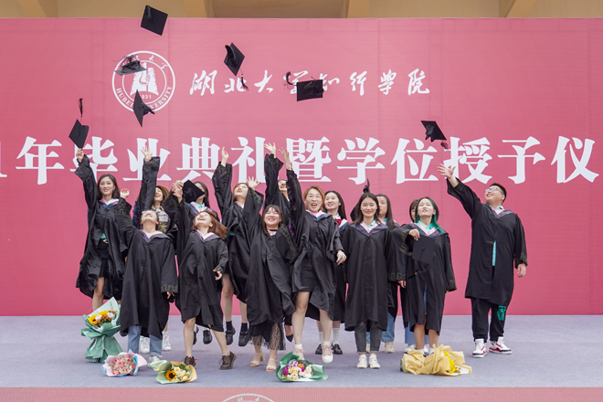仪式结束后,各学院还组织了形式多样的毕业嘉年华活动,祝福2021届毕业生扬帆远航。毕业典礼当天,楚天都市报等主流媒体通过客户端、微信、微博、抖音等平台聚焦报道了学校2021届毕业典礼盛况,学校“‘青春赶早’毕业典礼”话题报道入围当天新浪微博同城热搜前三位,新浪微博平台有300多万人关注相关报道,抖音平台有100多万人关注相关报道,5万人进行了点赞互动。