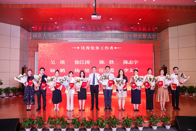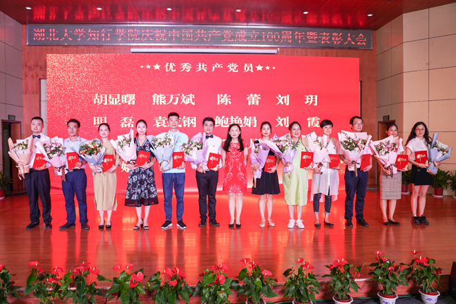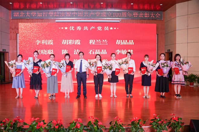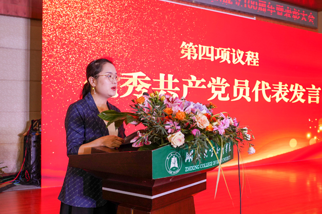 大会在雄壮的国歌声中拉开帷幕,副校长黄智凌宣读学校“两优一先”表彰决定。在欢快的音乐声中,校党委书记彭德忠、校长卜诗桢等校领导分别为优秀基层党组织、优秀党务工作者、优秀共产党员获得者颁奖。艺术与设计学院教师罗璇作为优秀共产党员代表发言。