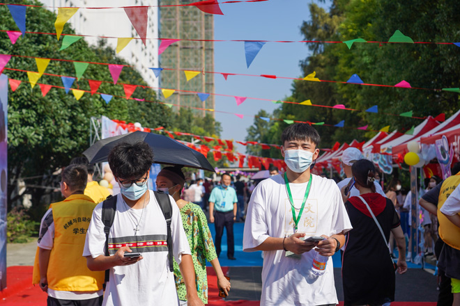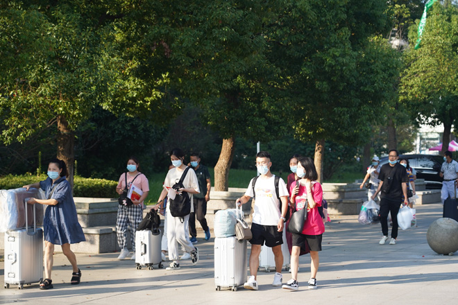 出示核酸检测报告、扫码、测温……师生热情服务,校门口严格查验,校园交通疏导有序,疫情防控措施到位,整个报到现场秩序井然。各职能部门和各学院工作人员盯靠一线,高效配合,协作有序,学生志愿者们引导每一位报到新同学到各自学院办理入学手续,帮忙搬运行李,并引导家长在休息区等候。