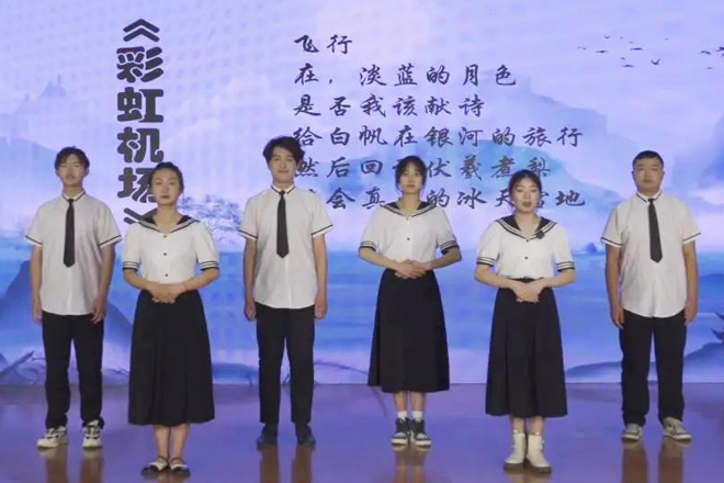 庆祝表彰大会在雄壮的国歌声中拉开帷幕。活动以“喜迎建团百周年,献礼党的二十大”为主题,分为“践行青春使命 讴歌百年征程”“ 凝聚青春力量 书写战疫华章”“ 唱响青春旋律 献礼建团百年”三个篇章。学生自导自演的青春舞剧《奔跑的青春》、合唱《鼓舞•如愿》、情景剧《青春有担当 奋斗正当时》、啦啦操《画卷》、诗朗诵《如果有一天(组诗)》、校园舞剧《理想》等节目精彩纷呈、激荡人心,展现了知行青年的朝气蓬勃与奋发有为,表达了知行青年青春向党、不负人民的豪情与壮志。