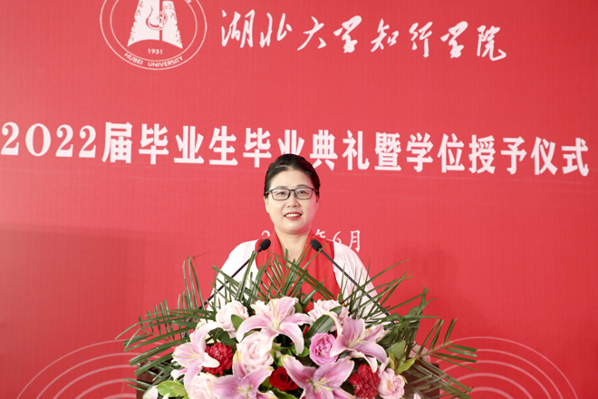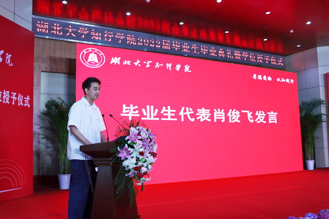教师代表、2022年度武汉市江岸区“最美科技工作者”孙美玲教授祝贺同学们顺利毕业,勉励同学们争做“最美”青年,永葆正直善良,勇担责任使命,在千磨万击中历练人生,在点滴积累中增长本领,在创新实践中收获成功,用拼搏奋斗书写青春最美华章。“无论今后身处何地,我们都将保持初心,不负心中赤诚热爱,不负母校师长嘱托。”毕业生代表肖俊飞深情告白母校,回忆了在知行的成长点滴,祝福母校年年桃李、岁岁芬芳!
