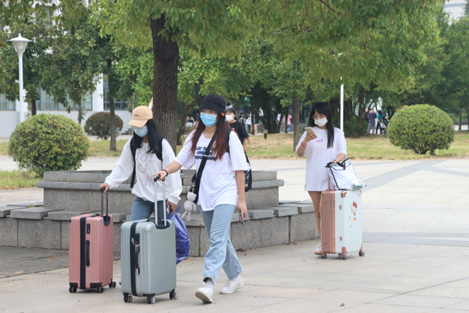 为了统筹做好新学期校园疫情防控和日常教育教学,相关职能部门和各二级学院在学校疫情防控指挥办公室的统一部署下,制定了详细的师生返校及开学工作方案,辅导员们通过电话、网络等形式将返校及开学注意事项通知到每个学生,确保同学们平安有序返校。学生返校期间,保卫处加强值守力量,严格按照疫情防控要求引导师生扫码、测温,期间,学校还特别安排了摆渡车和志愿者帮助同学们将行李托运至寝室门口。教务处、学工处和各二级学院组织教职工提前到岗,积极谋划准备新学期开学教学工作和学生管理工作,确保新学期开学平稳有序。