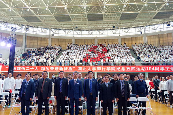 青春由磨砺而精彩,人生因奋斗而升华。4月26日下午,在五四青年节即将来临之际,学校在体育馆隆重举行2023年五四表彰大会。党委书记彭德忠寄语知行青年牢记党的教诲,不忘初心使命,立志民族复兴,不负韶华,不负时代,不负人民,在青春的赛道上奋力奔跑,争取跑出当代青年的最好成绩。全体在校校领导,各职能部门、各学院负责人,教职工代表、团学代表及受表彰的先进集体和个人代表欢聚一堂,共同庆祝青年人的节日。