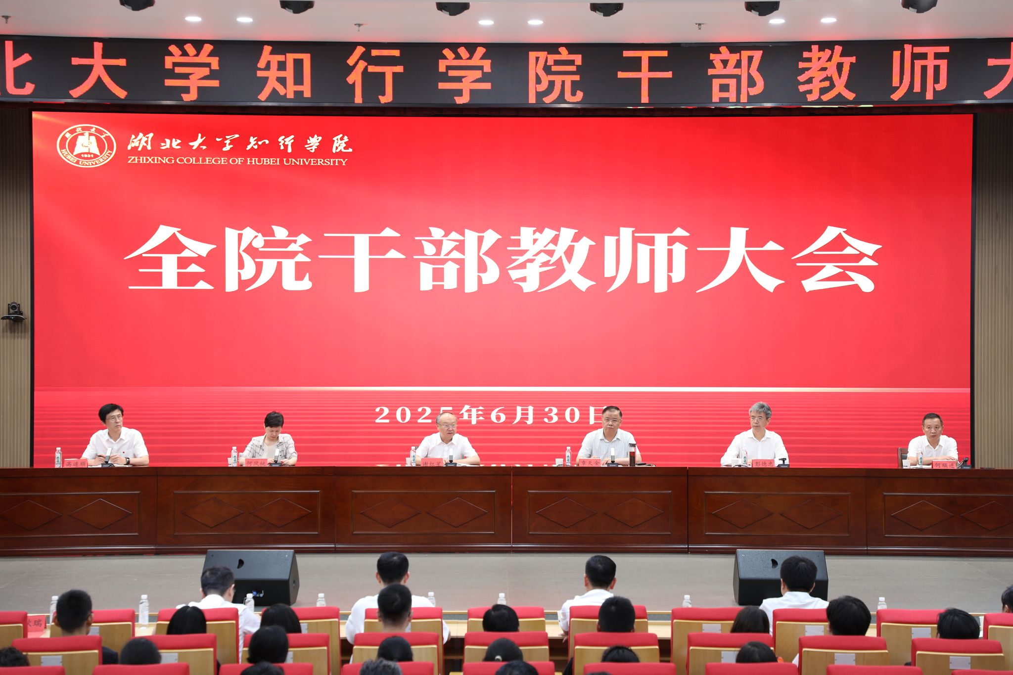 6月30日,湖北大学知行学院召开干部教师大会,宣布湖北大学党委决定:高连顺任湖北大学知行学院党委书记,何顺进任湖北大学知行学院院长、党委委员,彭德忠因年龄原因转任专职组织员,吕露超因交流轮岗不再担任知行学院副院长。湖北大学党委书记谢红星出席会议并讲话。湖北大学党委常委章天金主持会议。湖北大学党委组织部常务副部长何凤桃宣读湖北大学党委决定。知行学院党政班子成员、全院中层干部、全体教职工参加会议。