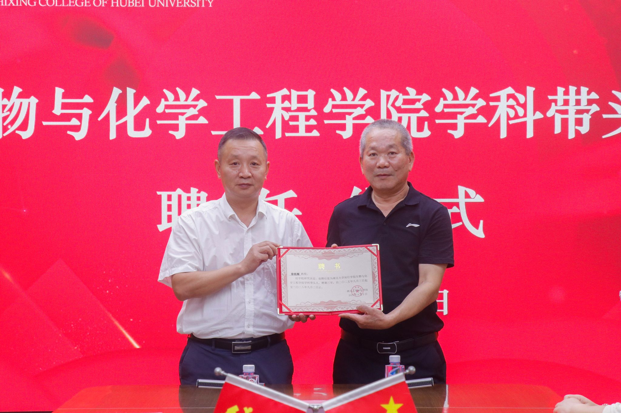 徐祖顺教授感谢学校的信任和支持,表示将充分发挥自身优势,尽快进入角色,认真履行岗位职责,深耕学校人才培养,积极推进学校新工科建设,全力助推学校事业高质量发展。仪式上,何顺进与徐教授签订了聘任协议,并为徐教授颁发了聘任证书。