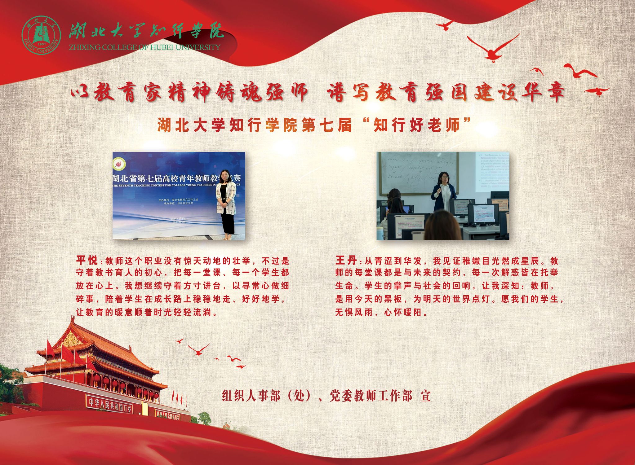 教师代表王夏、王丹在发言中分享了作为人民教师的无上光荣和育人心得喜悦,表示将始终秉持“学高为师,身正为范”的信念,不断提升自身的道德修养和学术水平,做与时俱进的奋进者和学生成长的守护者,以更饱满的热情、更扎实的工作,回报学校的信任、同事的支持和学生的期待。