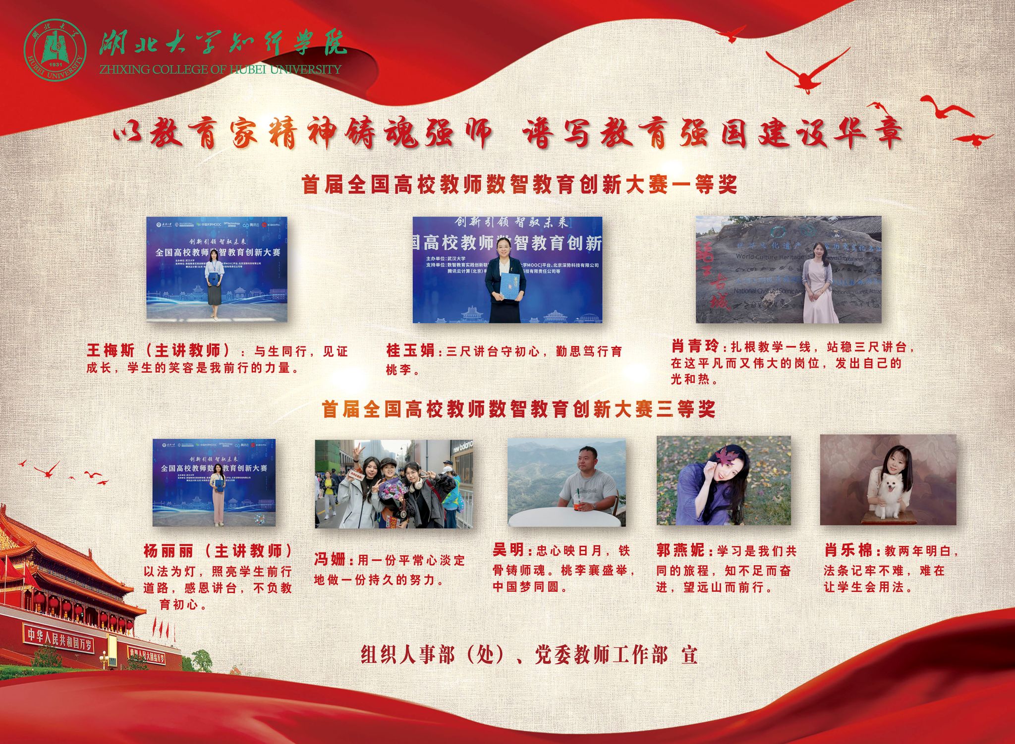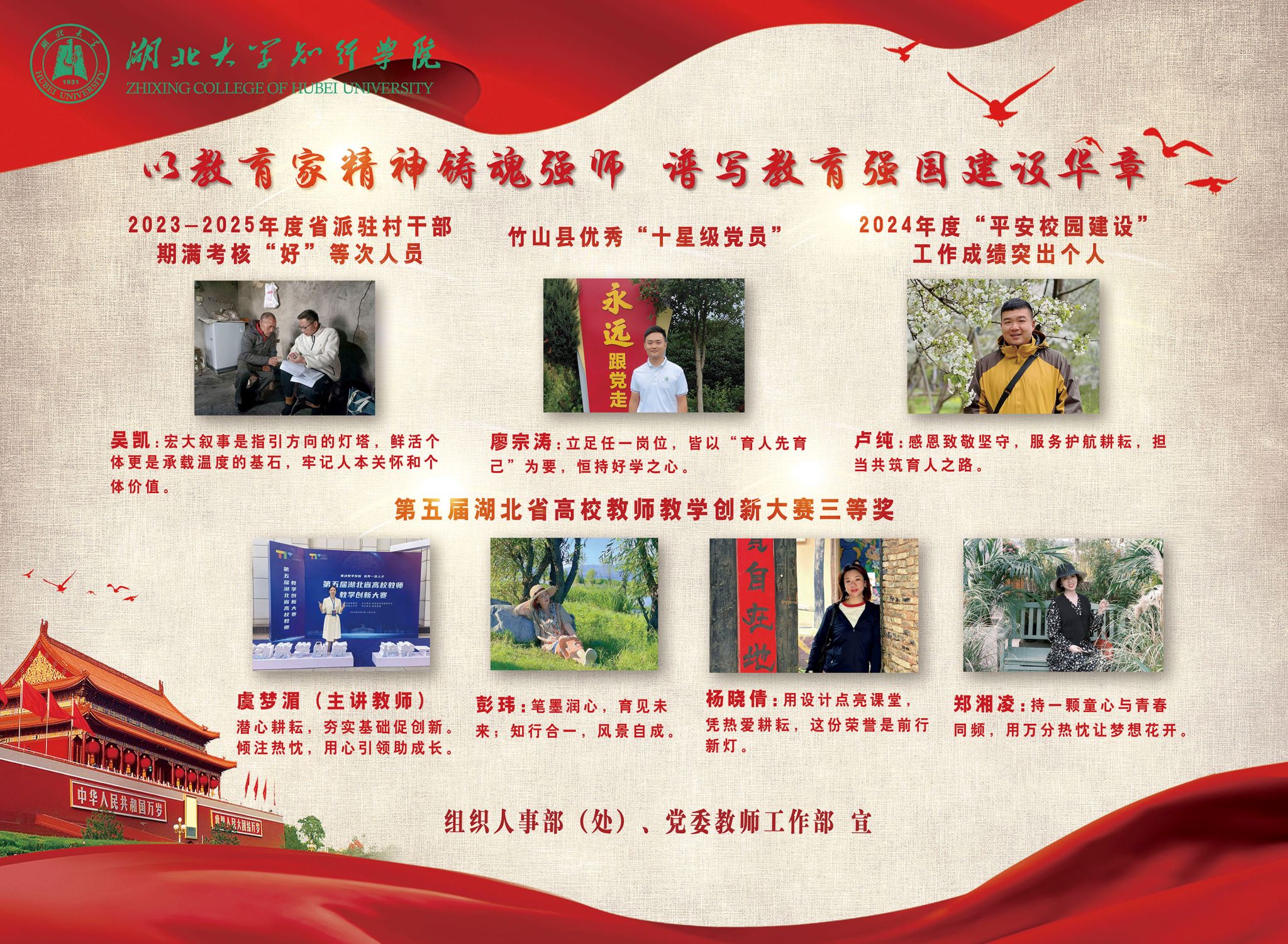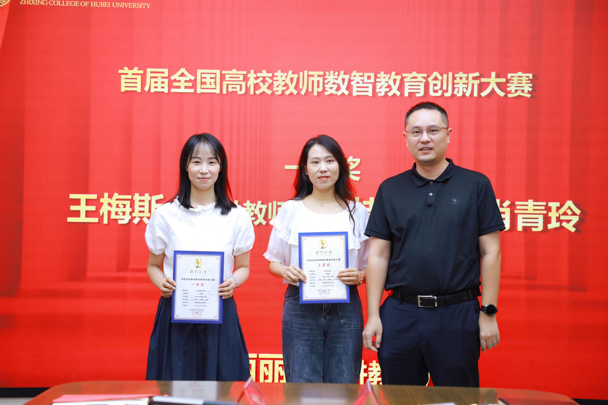 副院长魏顺宣读了相关表彰决定。院长何顺进等校领导分别为第七届“知行好老师”获得者、首届全国高校教师数智教育创新大赛获奖者、第五届湖北省高校教师教学创新大赛获奖者、2024年度“平安校园建设”工作成绩突出个人和乡村振兴工作先进个人颁奖。
