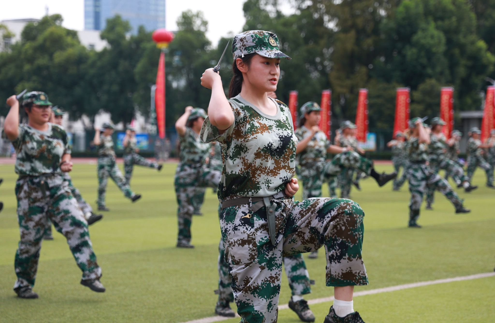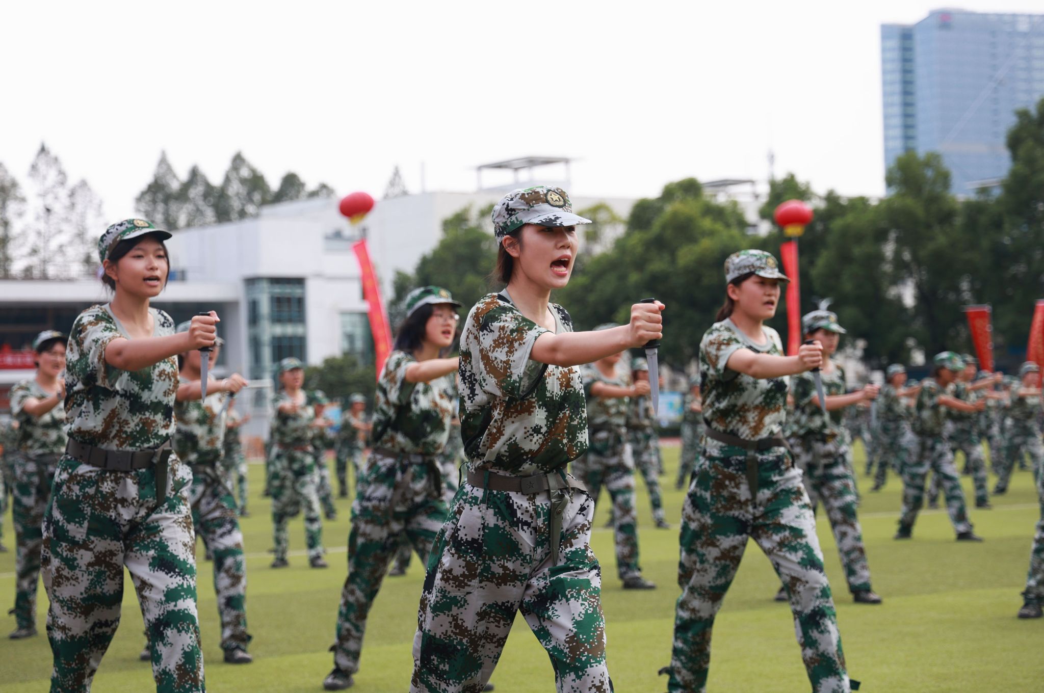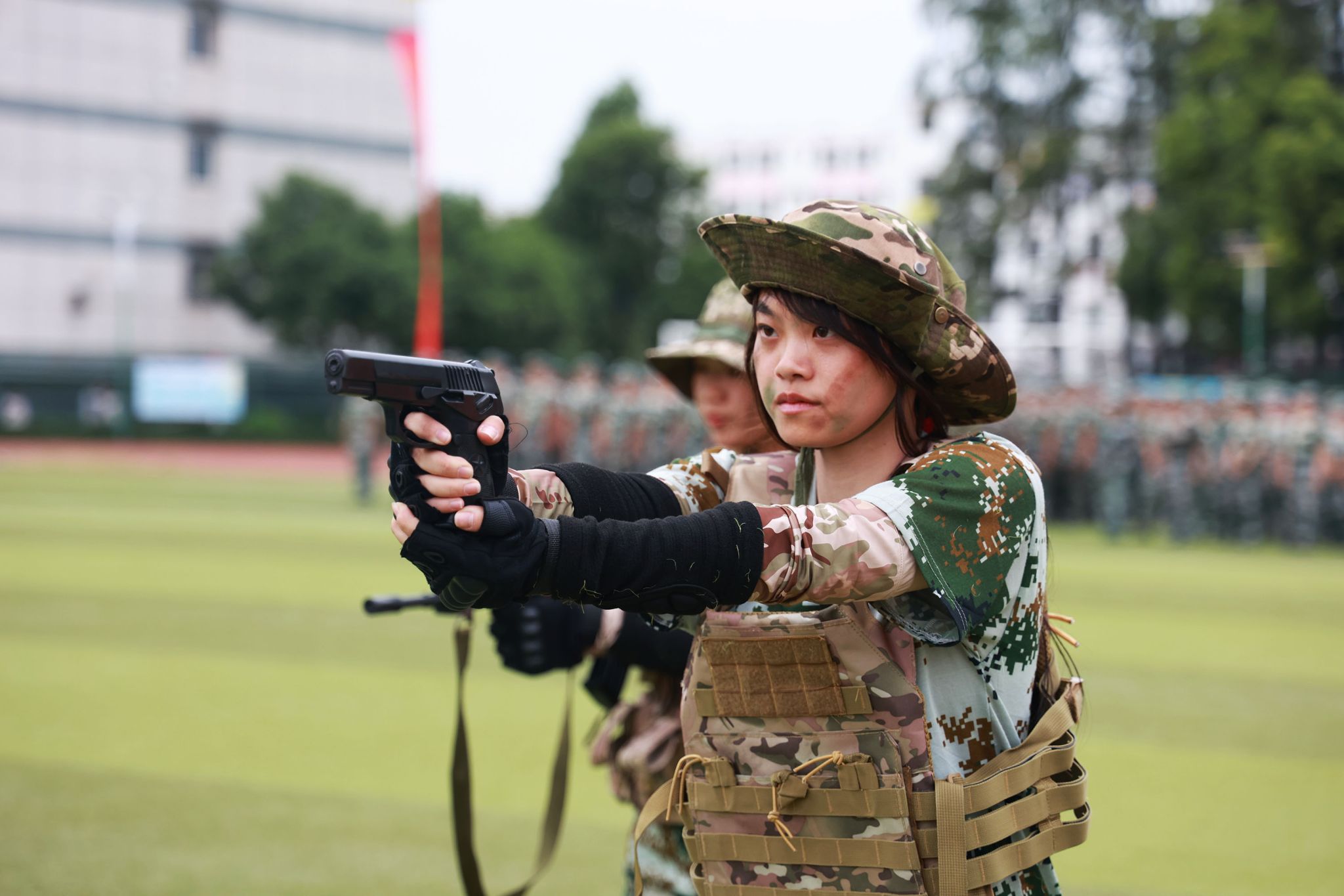 大会在庄严的国歌声中拉开帷幕,全体师生起立,迎国旗、奏唱国歌,表达对祖国的无限热爱与崇高敬意。随后,军训成果汇报精彩上演:匕首操方阵动作整齐划一,擒敌术方阵虎虎生风,战术连模拟实战紧张激烈,分列式步伐铿锵有力,充分展现了2025级新生经过军训洗礼后的飒爽英姿与昂扬斗志,赢得了现场阵阵掌声。