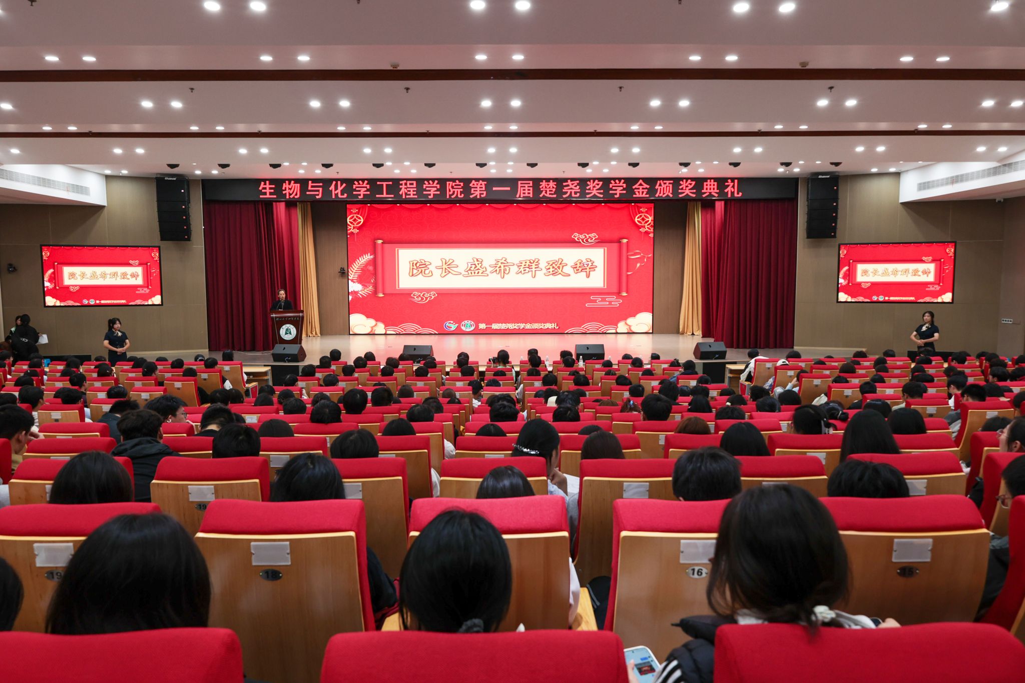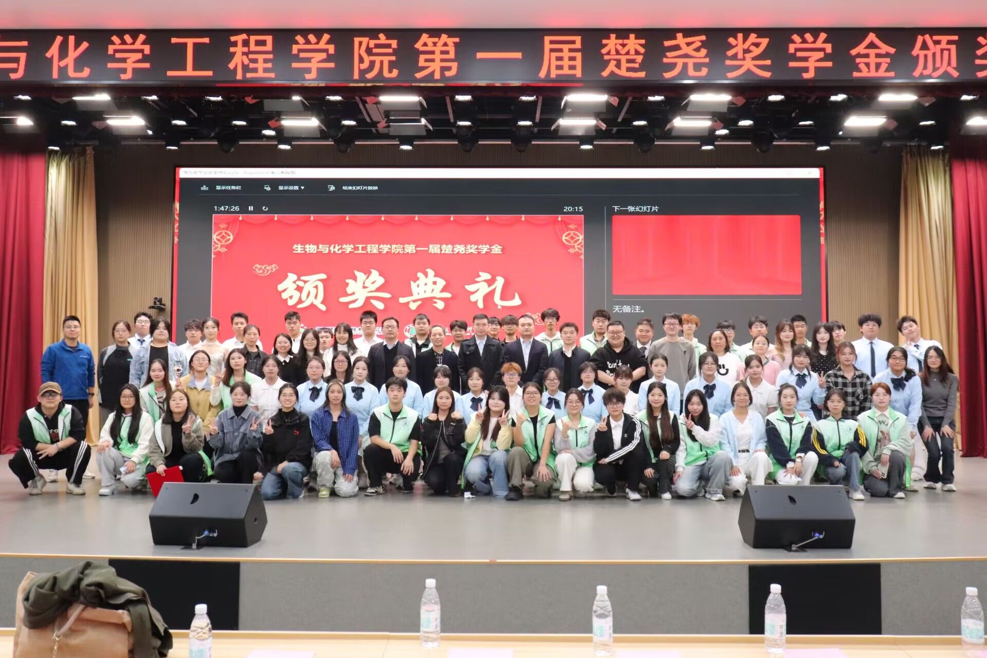 为表彰优秀学子,推进优良学风建设,10月31日晚,生物与化学工程学院第一届“楚尧”奖学金颁奖典礼在知远楼弘德厅举行。党委副书记黄智凌、楚尧信息技术有限公司总经理夏瑜出席活动,生物与化学工程学院班子成员、教师代表与400余名学生共同见证荣耀时刻。