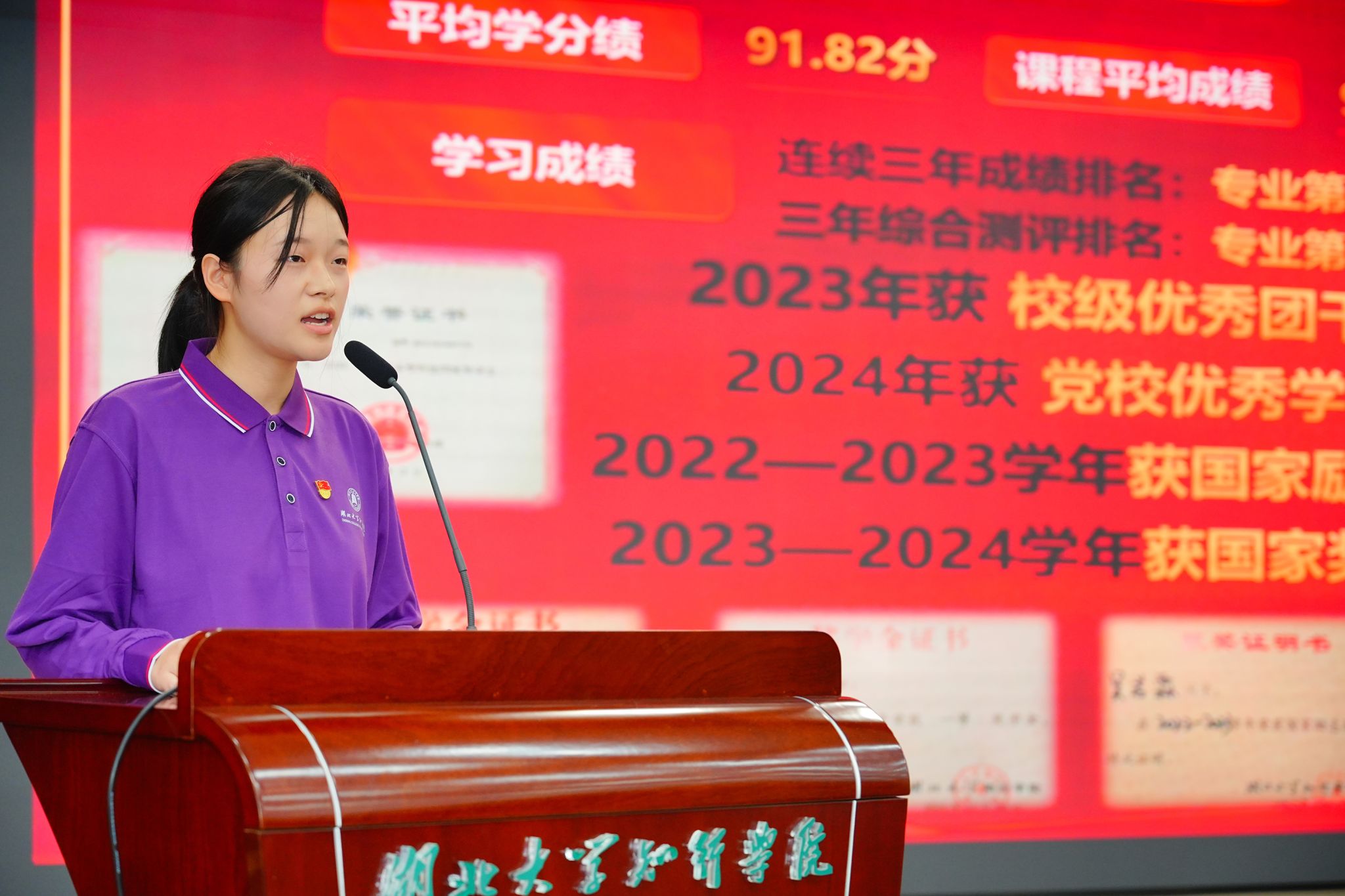 宣讲中,9位优秀学生党员从学业科研、志愿服务、社会实践、学生工作等多个维度,分享了自己的成长故事与奋斗历程。从袁佳豪同学以“白杨树”自喻,扎根基层、服务师生,到徐云同学以专业为笔、以科普为墨,点燃青少年的科学梦想;从明鑫鸿同学跨越600公里山路、逆境中拼搏奋进,到杨月同学在支部赋能下开展理论宣讲、服务生态实践;从臧佳韵同学用画笔传递温暖、美育润心,到吴若霖同学以“逐光”为志、在学业与实践中双向奔赴;从陈梦娴同学以文科担当践行“文以载道”,到曹鸿洋同学用代码书写党员初心,再到卢笛同学在全谷物科普中推动健康中国建设。他们的故事,既有理想信念的坚定,也有扎根基层的坚守;既有专业领域的突破,也有服务群众的温度。宣讲过程中,选手们的事迹真实感人、语言朴实真挚,赢得了现场师生的阵阵掌声。