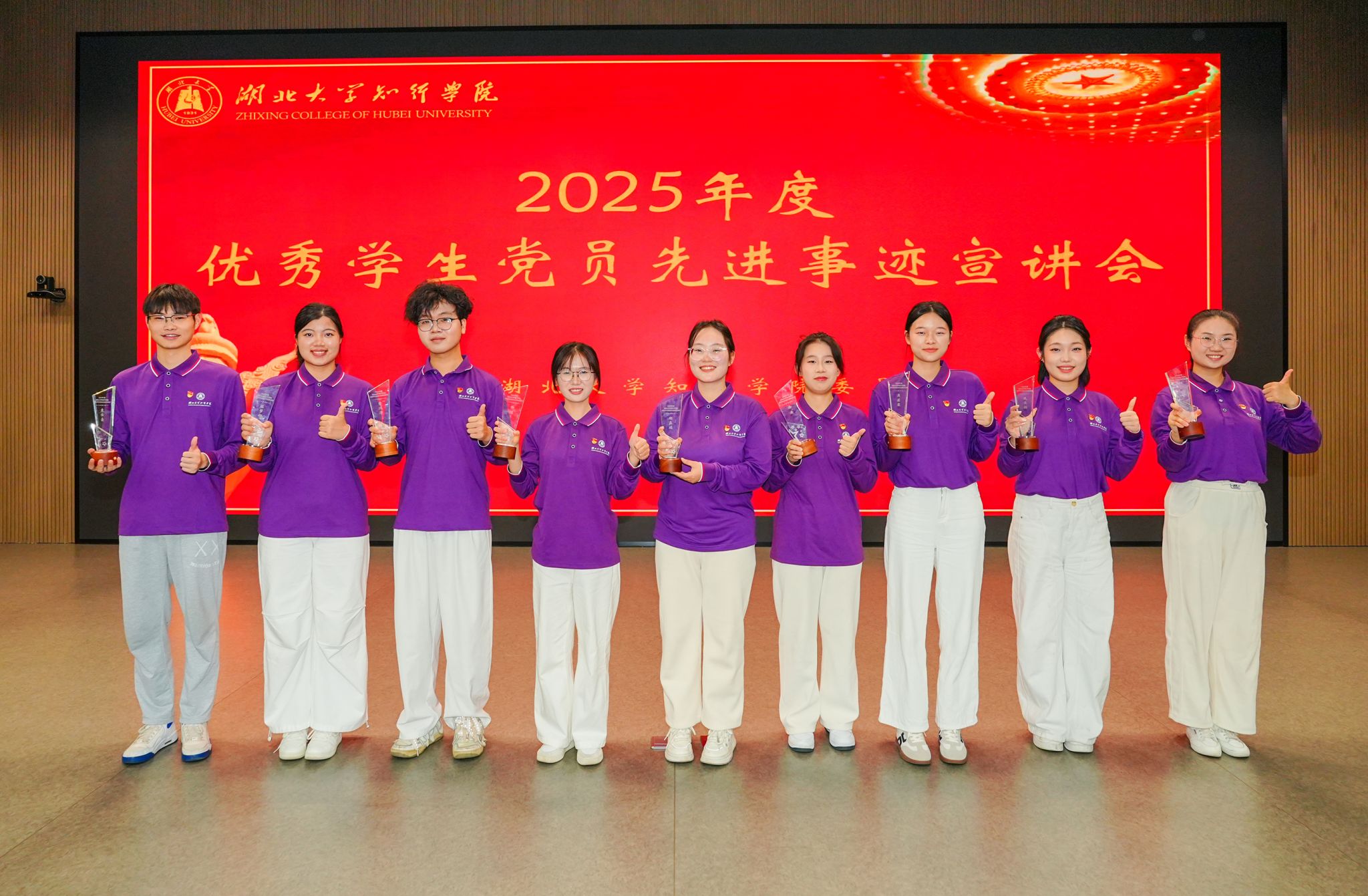 党委副书记黄智凌在总结讲话中希望同学们以优秀学生党员为榜样,立鸿鹄之志,把个人理想融入党和国家事业,树立与时代同心同向的理想信念。要以实干笃行为舟,积成长之力,珍惜大学时光,夯实专业基础,积极参与实践,在知行合一中锤炼真本领。要以服务奉献为荣,修高尚之德。从小事做起,从身边做起,在志愿服务、集体建设中涵养家国情怀和责任担当。宣讲结束后,副院长刘张虎为9名学生党员颁发荣誉奖杯。