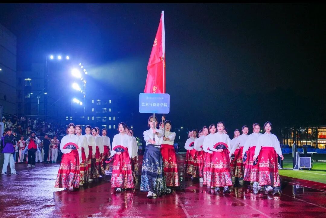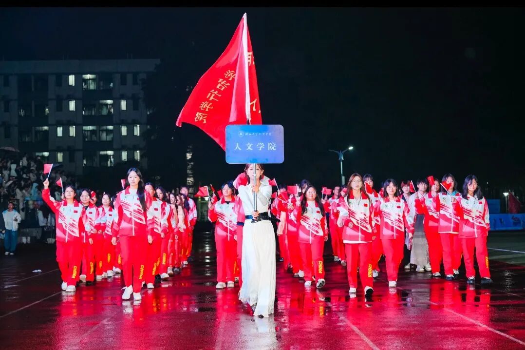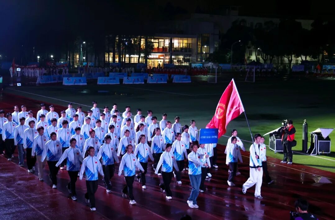 6日晚,运动会开幕式盛大举行,伴随着激昂的运动员进行曲,各学院运动员方阵身着统一服装,精神抖擞、口号嘹亮地依次走过主席台。同学们创意十足的队列编排与活力满满的风采展示,赢得了现场观众的阵阵掌声。开幕式中的摔跤表演、舞龙团体舞蹈、小提琴演奏等文艺表演迅速点燃现场师生热情。期间,运动员代表与裁判员代表分别庄严宣誓。党委副书记黄智凌宣读“体育道德风尚奖和“最佳拼搏奖”评选办法。第十五届全国运动会中国式摔跤全国冠军在致辞中向学校田径运动会的举行表示热烈祝贺。副院长、校体委主任刘张虎在开幕词中希望全体运动员发扬“更高、更快、更强、更团结”的体育精神,严守赛场规则,凝聚集体力量,在拼搏奋进中锤炼强健体魄与健全人格,将赛事激情转化为青春能量,以奋斗书写强国有我的壮丽华章。