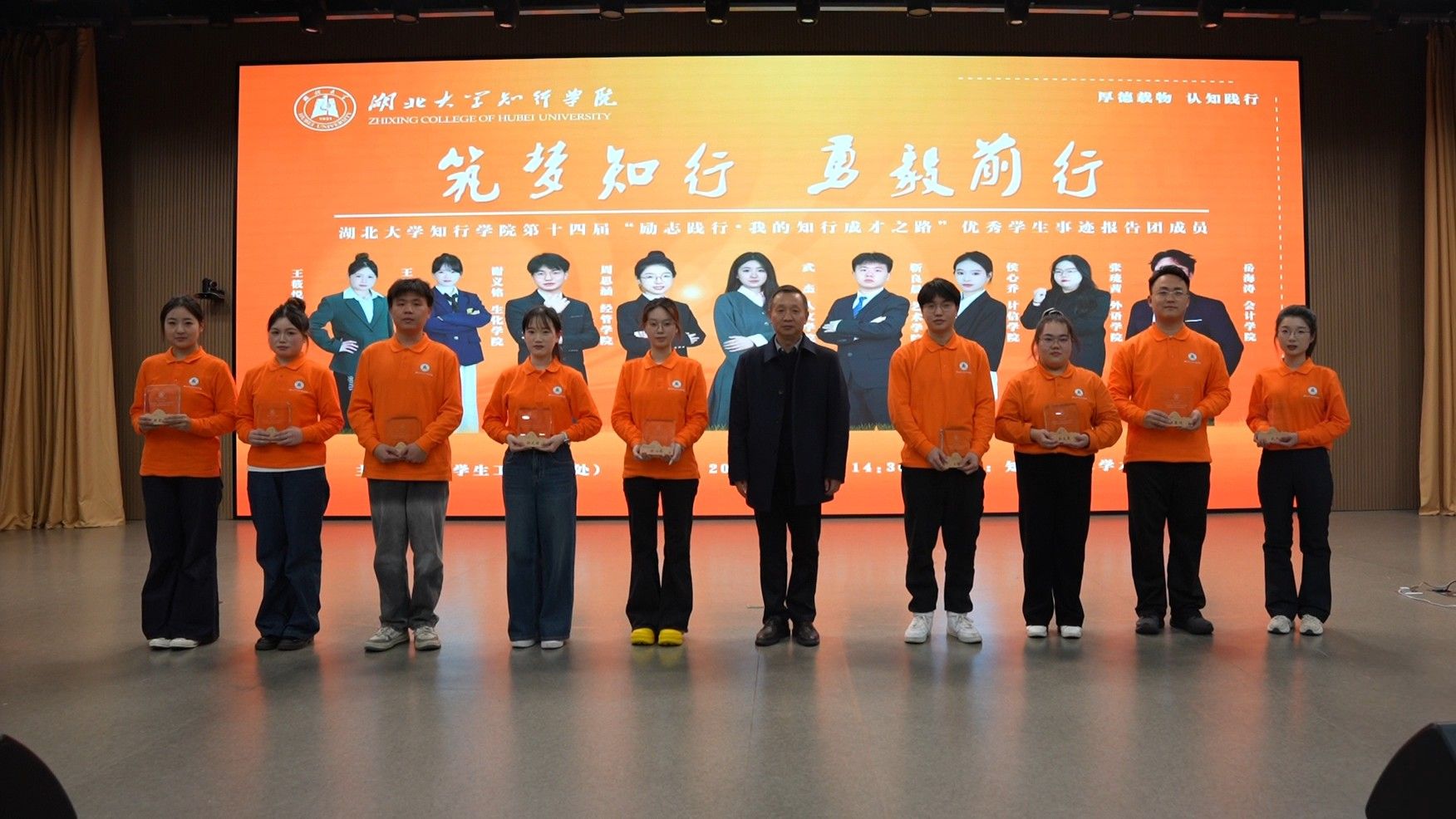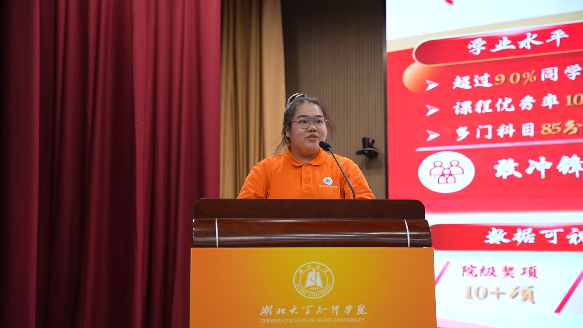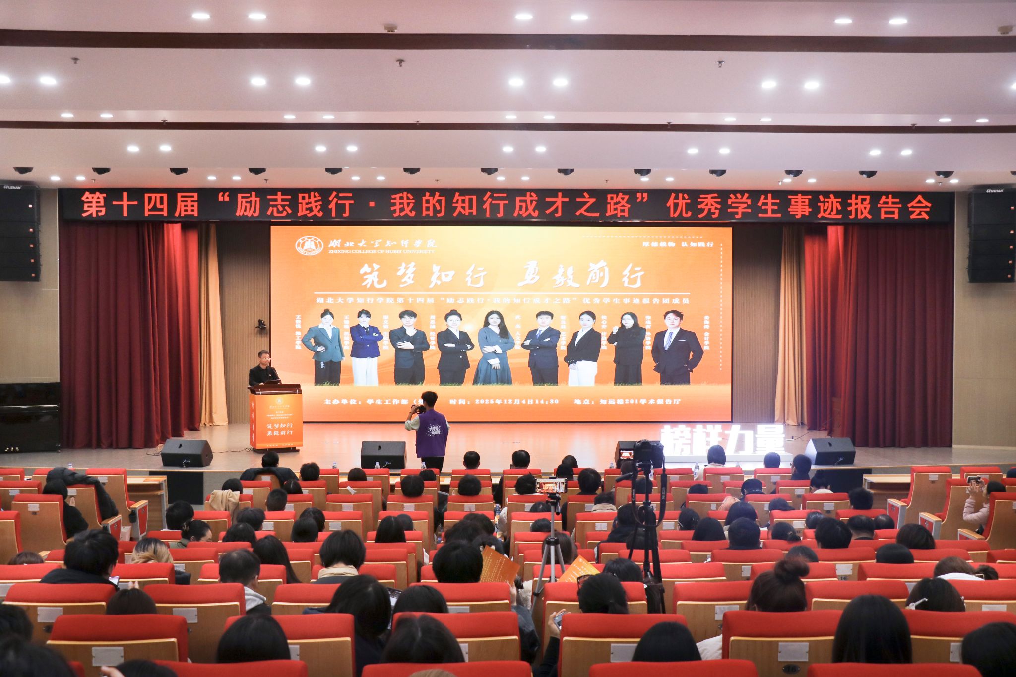 活动伊始,全体与会人员共同观看了展现优秀学子风采的专题视频。随后,报告会在庄严的国歌声中正式开幕。在事迹报告环节,武杰、王筱悦、靳良晨、王镱臻、侯心乔、谢义铭、张琉茜、岳海涛、周思涵等来自九个二级学院的九名优秀学生代表依次登台,结合自身成长经历,从思想引领、专业学习、科研创新、学科竞赛、社会实践、志愿服务与学生工作等多个维度,生动讲述了他们在知行路上砥砺奋进、全面发展的故事。他们中既有连续三年专业第一、发表学术论文的学术先锋,也有在国家级高水平竞赛中屡获大奖的竞赛能手;既有志愿服务时长超千小时的奉献楷模,也有精于技能、笃定职业蓝图的实践达人;既有平衡学业与勤工俭学的时间管理者,也有活跃于校园文化舞台、致力传播中国声音的多面手。他们的分享真挚感人、事迹突出,集中展现了新时代知行学子有理想、敢担当、能吃苦、肯奋斗的精神风貌,为在场师生带来了一场深刻的青春励志课。