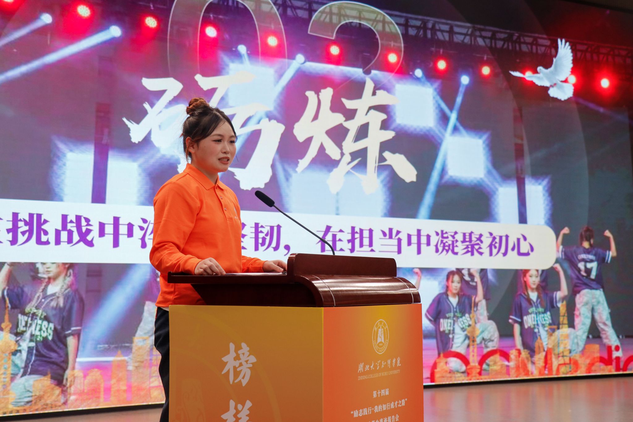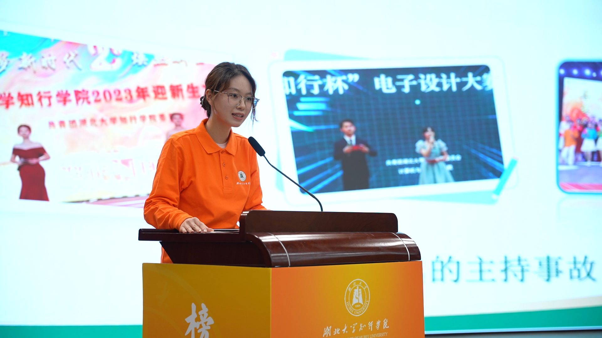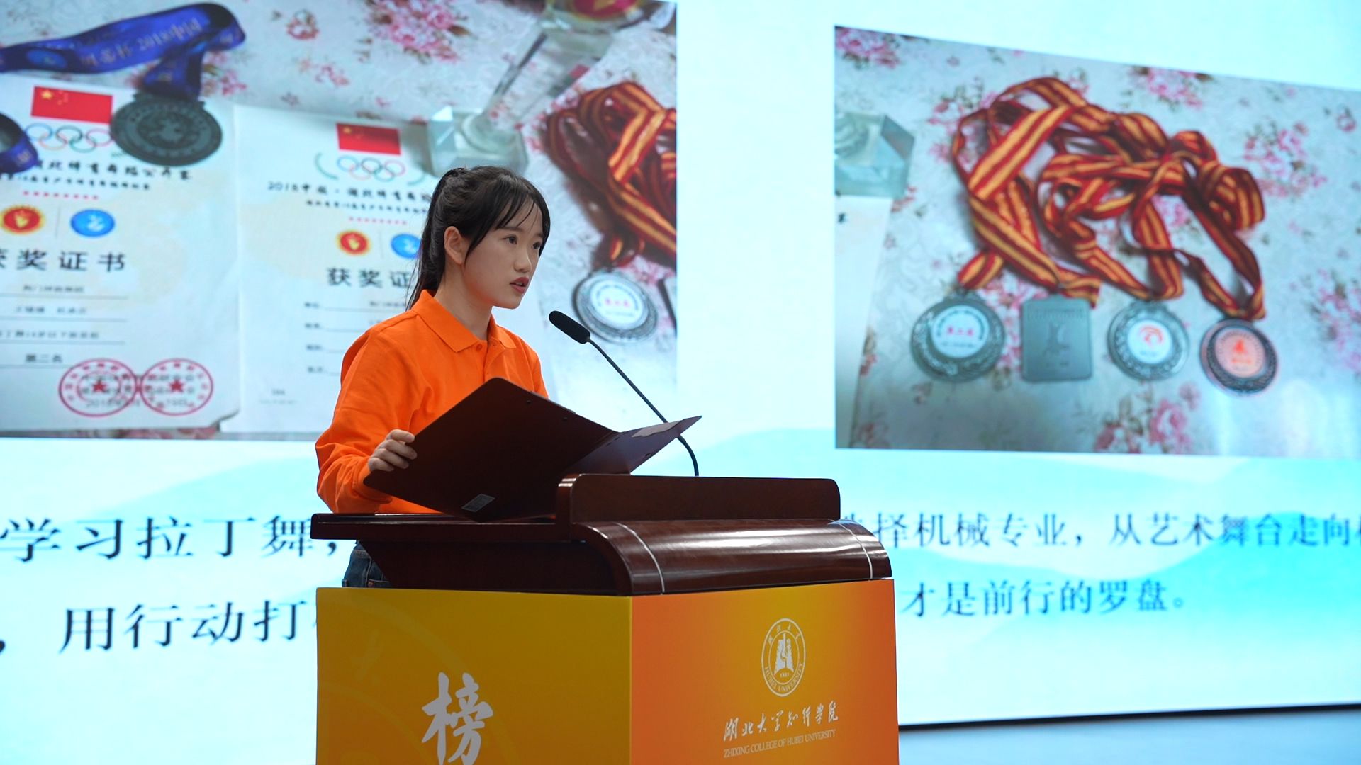 活动伊始,全体与会人员共同观看了展现优秀学子风采的专题视频。随后,报告会在庄严的国歌声中正式开幕。在事迹报告环节,武杰、王筱悦、靳良晨、王镱臻、侯心乔、谢义铭、张琉茜、岳海涛、周思涵等来自九个二级学院的九名优秀学生代表依次登台,结合自身成长经历,从思想引领、专业学习、科研创新、学科竞赛、社会实践、志愿服务与学生工作等多个维度,生动讲述了他们在知行路上砥砺奋进、全面发展的故事。他们中既有连续三年专业第一、发表学术论文的学术先锋,也有在国家级高水平竞赛中屡获大奖的竞赛能手;既有志愿服务时长超千小时的奉献楷模,也有精于技能、笃定职业蓝图的实践达人;既有平衡学业与勤工俭学的时间管理者,也有活跃于校园文化舞台、致力传播中国声音的多面手。他们的分享真挚感人、事迹突出,集中展现了新时代知行学子有理想、敢担当、能吃苦、肯奋斗的精神风貌,为在场师生带来了一场深刻的青春励志课。