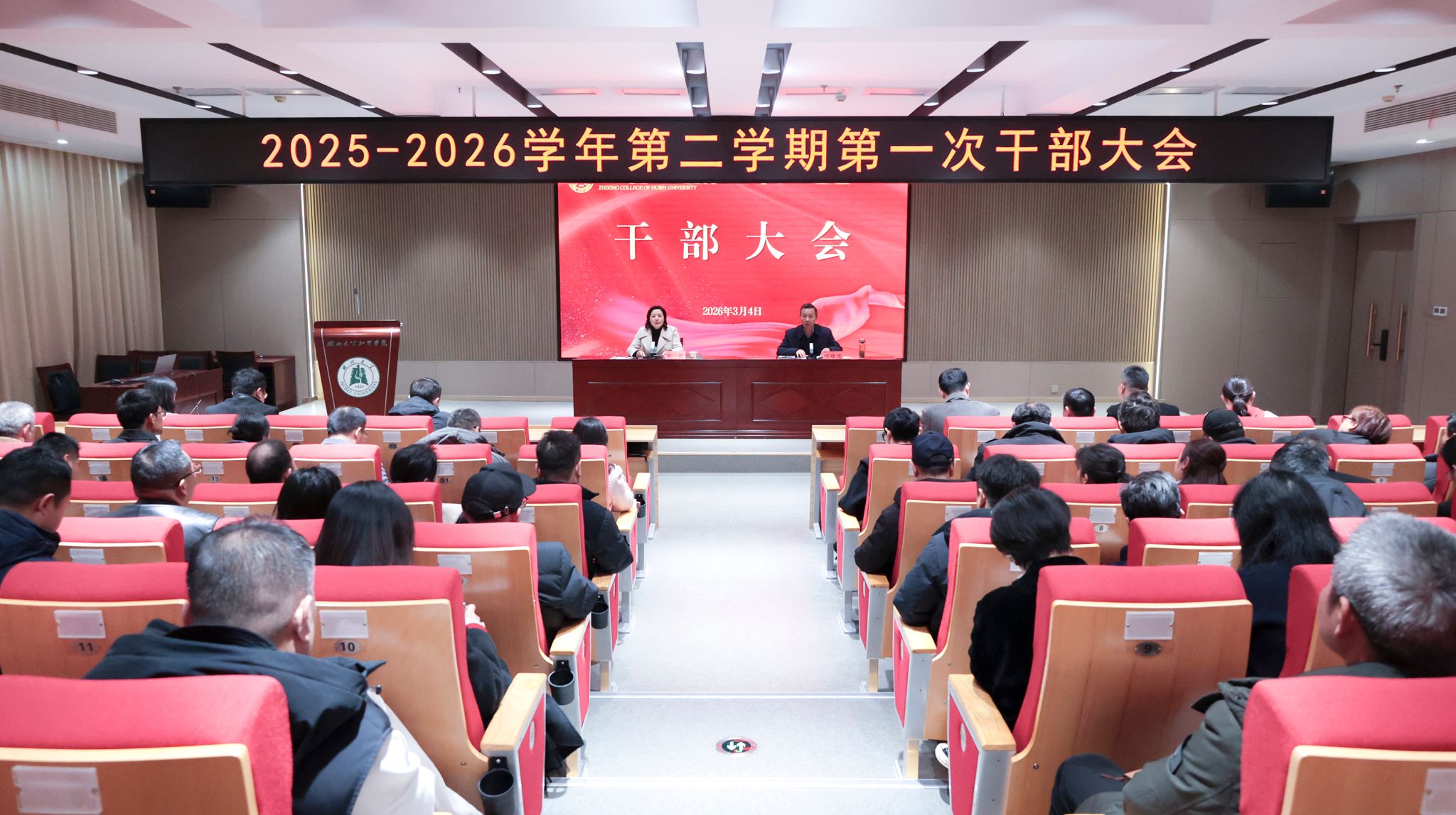 3月4日下午,学校在知远楼弘智厅召开新学期干部大会,部署安排新学期重点工作。党委书记金梅主持会议,院长何顺进作工作部署。全体校领导、全校中层干部参加会议。
