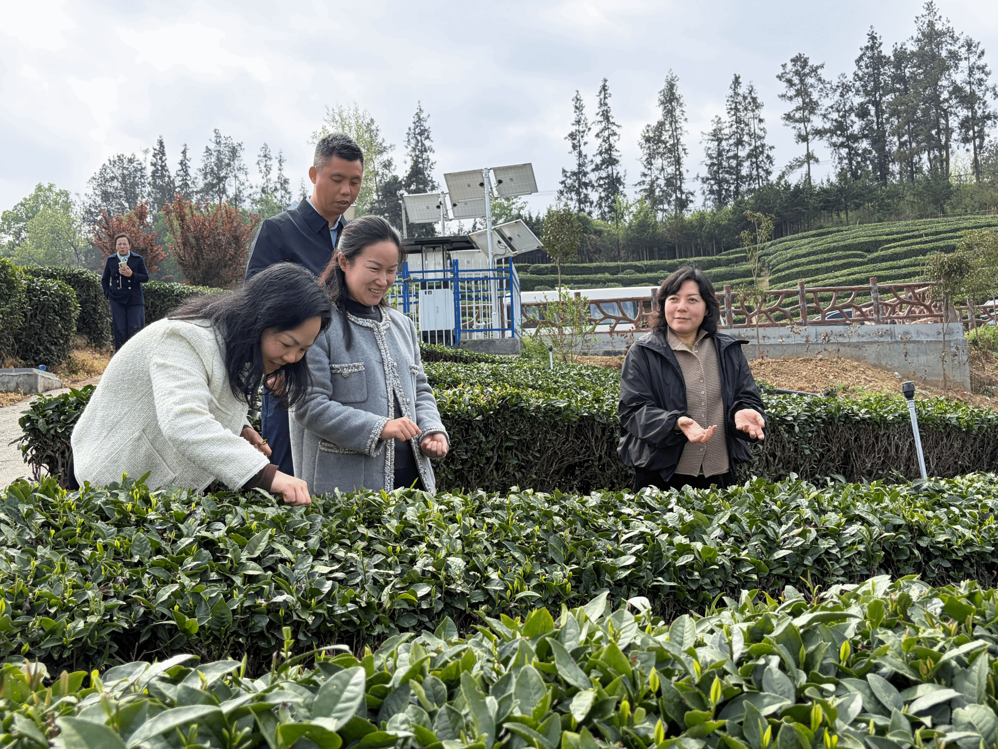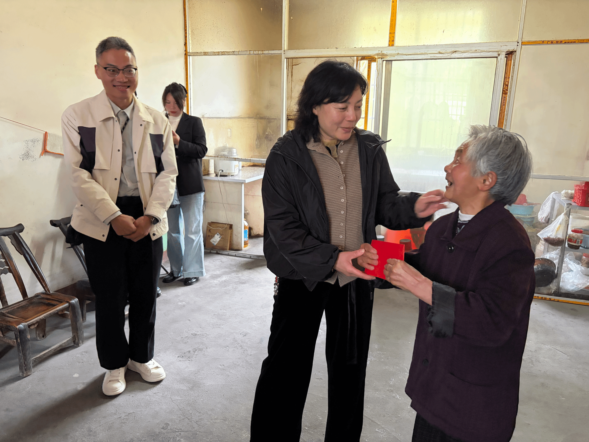 座谈会结束后,金梅一行深入困难群众家中走访慰问,并先后前往磨滩村安幼孝老中心、竹茶集团、九女峰森林公园、圣水湖度假区、胜寰集团(湖北)饮品有限公司等地,详细了解驻点村乡村公共服务保障、茶产业发展、生态旅游开发、民俗文化传承等情况。期间,金梅还组织召开了竹山校友座谈会,邀请多名在竹山工作生活的知行校友代表欢聚一堂,共忆母校情谊、共话家乡发展。调研中,学校直属第一党支部与磨滩村党支部开展了联合主题党日活动。
