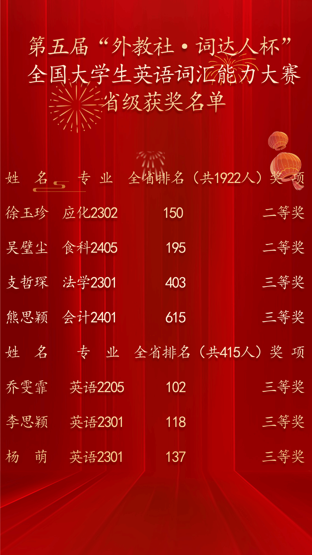 知行学子在全国大学生英语词汇能力大赛获佳绩