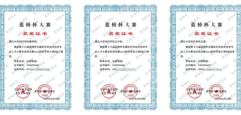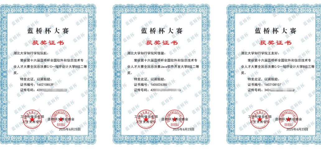 在第十六届“蓝桥杯”全国软件和信息技术专业人才大赛中,计信学子荣获全国总决赛二等奖2项、三等奖3项、优秀奖1项,同时获得省赛一等奖6项、二等奖12项、三等奖37项;在全国大学生电子设计竞赛中,获得省级三等奖1项、优秀奖3项;在湖北省第十一届大学生物理实验创新设计竞赛中,荣获省级二等奖2项、三等奖2项。