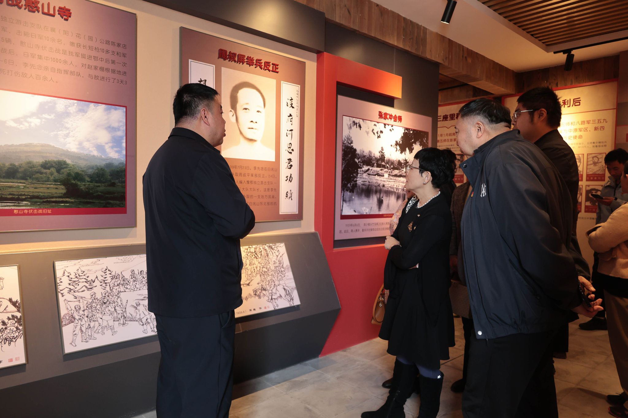 在湖北长生堂高新农业有限责任公司,党员们实地察看了粮食烘干生产线、农产品精深加工设备及成品仓储区,详细了解企业在优质稻种植、粮食初加工、特色农产品研发等领域的运营情况,并针对企业研发的朱桥香米、富硒大米、牡丹油等系列产品,围绕产品包装设计、质量标准制定、市场推广策略等提出专业建议,为企业产业升级提供技术参考。随后,大家前往朱桥村党群服务中心,在王义贞镇副镇长胡业浩的引导下,参观了党建文化墙、便民服务大厅、党员活动室等阵地,详细了解朱桥村以“党建 + 产业”为抓手,推动粮食种植规模化、农产品产销一体化的发展路径,并参观了新四军第五师纪念广场和红色纪念馆。