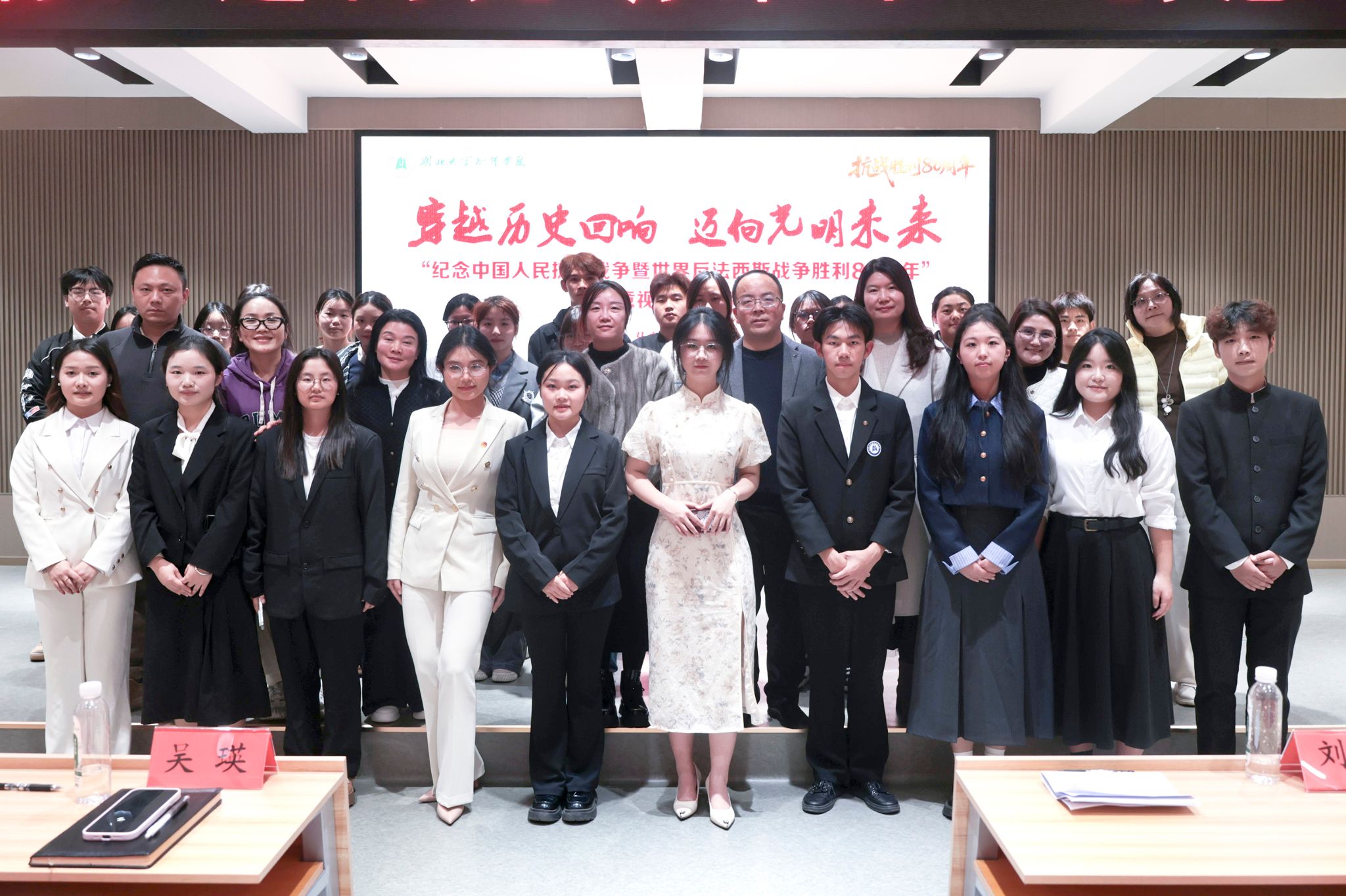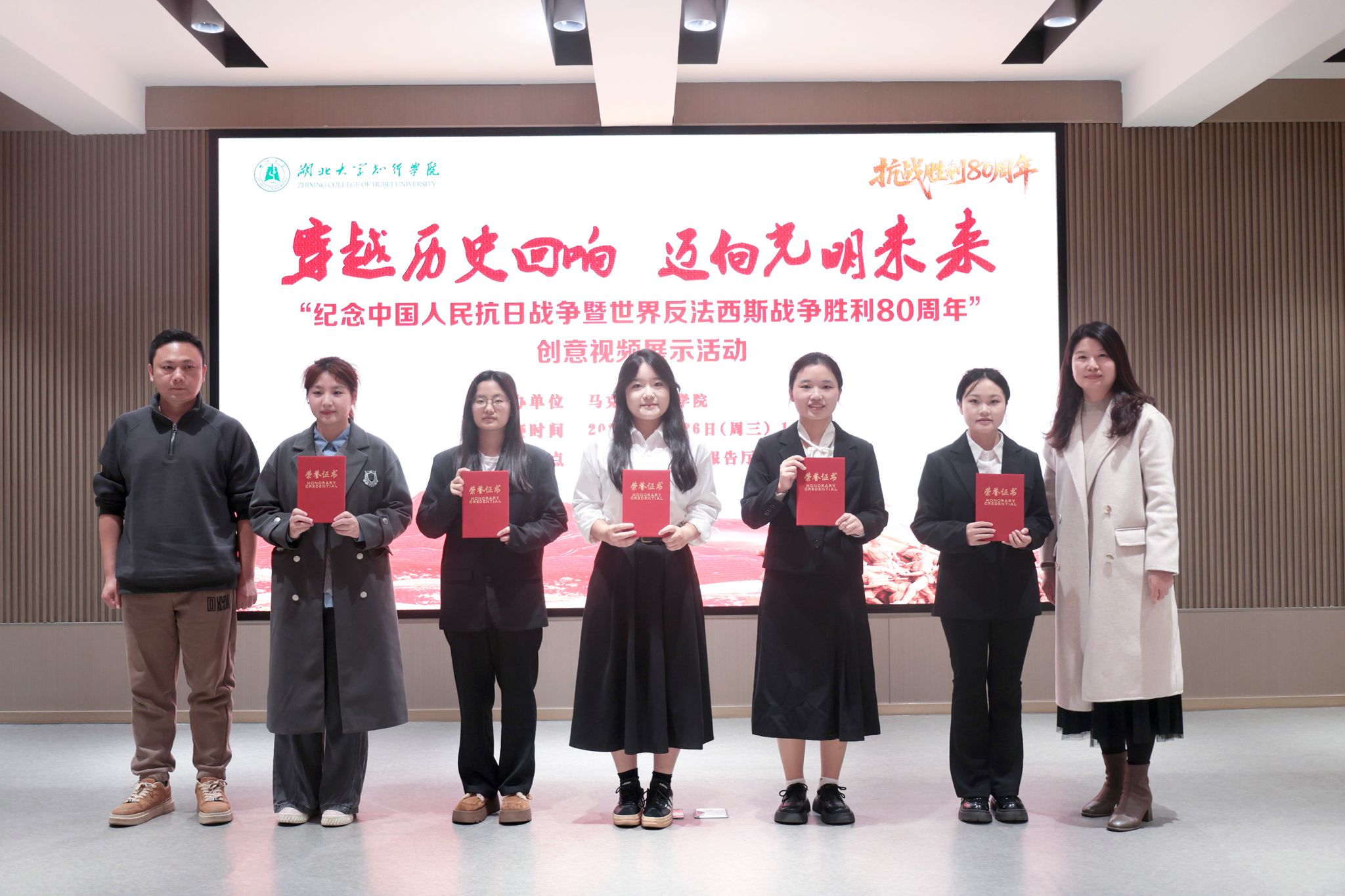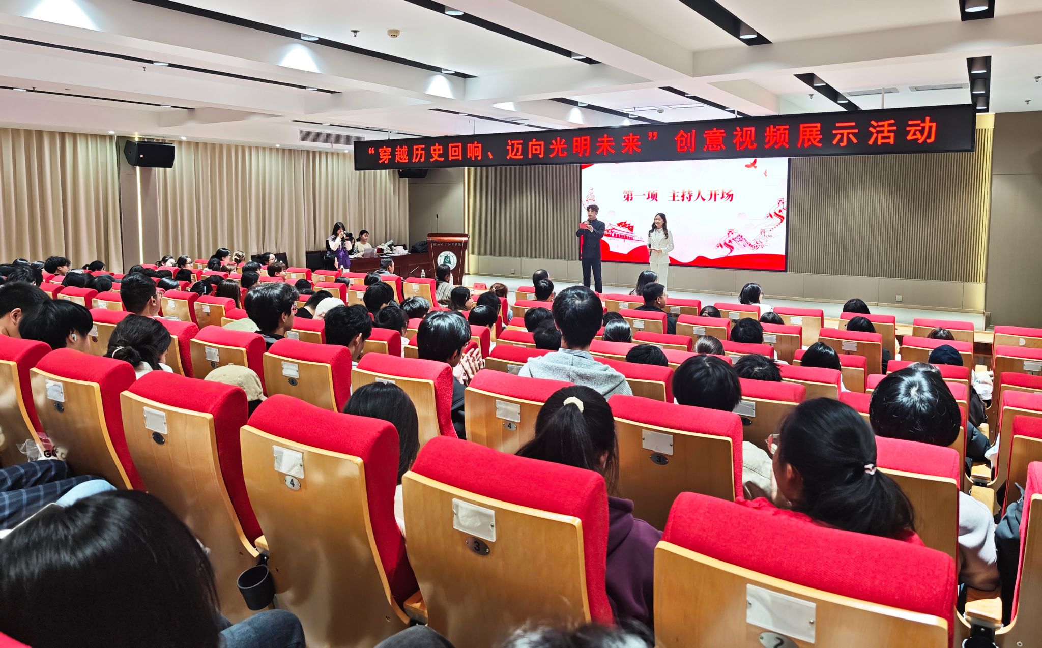 为深刻铭记中国人民抗日战争暨世界反法西斯战争胜利的伟大历史,大力弘扬爱国主义精神与伟大抗战精神,11月26日下午,马克思主义学院在知远楼弘智厅举办“穿越历史回响 迈向光明未来——纪念中国人民抗日战争暨世界反法西斯战争胜利80周年”创意视频展示活动。相关职能部门和马克思主义学院专业教师担任评委,来自各二级学院的9支团队进行了集中展示。