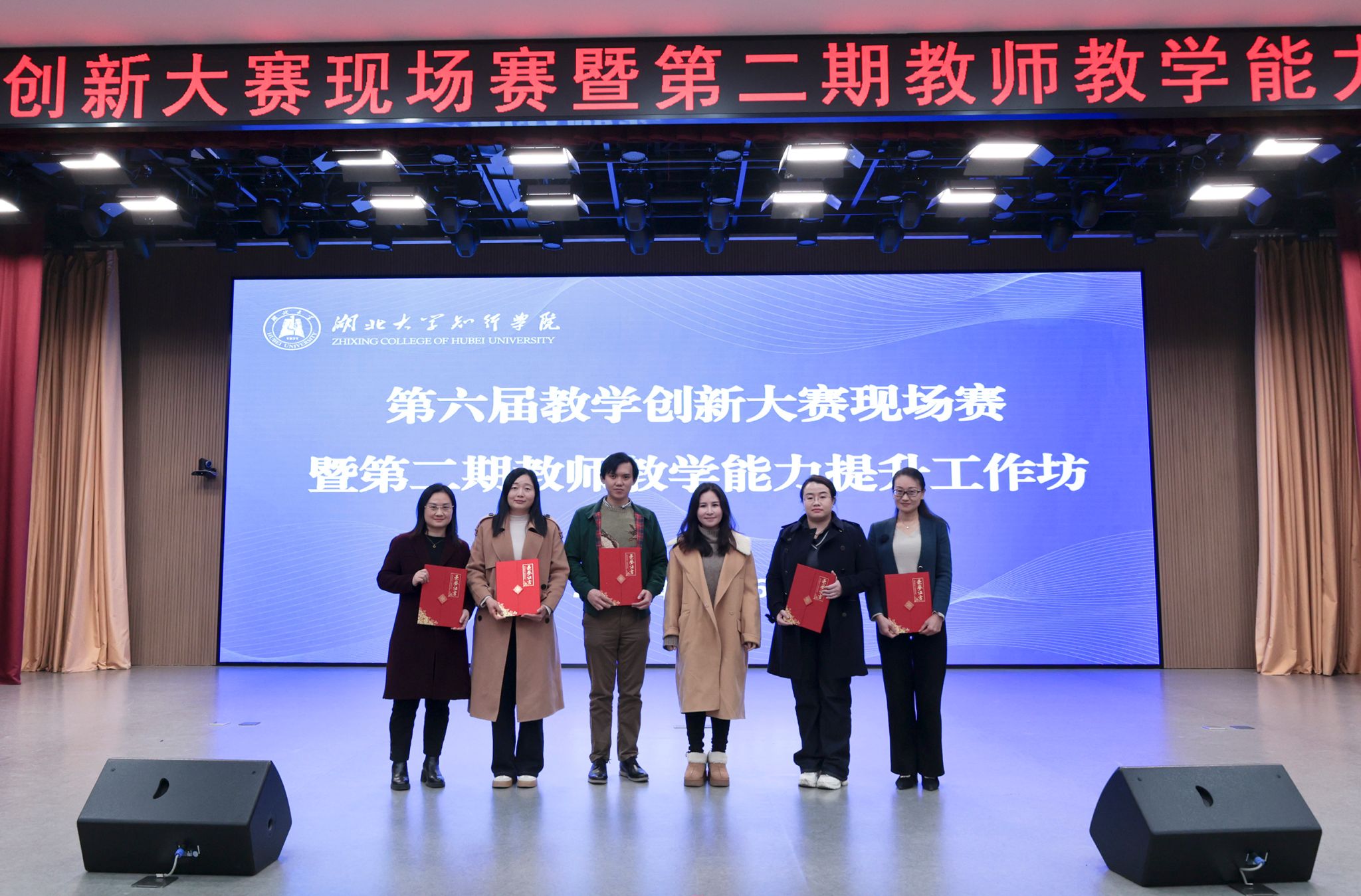 经过激烈角逐,综合网络评审与现场汇报成绩,大赛最终评出一等奖4项、二等奖5项、三等奖5项。在随后举行的颁奖环节中,四位专家评委分别为获奖教师颁发证书并合影留念。会计学院桂玉娟团队和王梅斯团队、人文学院范旭阳团队、机械与自动化学院李静团队荣获一等奖;经济与管理学院马欢欢团队和王雅琳团队、人文学院杨洋团队、艺术与设计学院虞梦湄团队、计算机与信息工程学院阳子轩团队获二等奖;经济与管理学院胡歆珮团队、外国语学院祝娟团队和伍澄团队、人文学院金霞团队、生物与化学工程学院祝媛媛团队获三等奖。